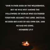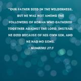 "Our father died in the wilderness, but he was not among the followers of Korah who gathered together against the LORD. Instead, he died because of his own sin, and he had no sons.