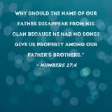 Why should the name of our father disappear from his clan because he had no sons? Give us property among our father's brothers."