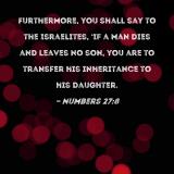 Furthermore, you shall say to the Israelites, 'If a man dies and leaves no son, you are to transfer his inheritance to his daughter.