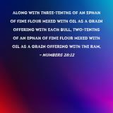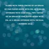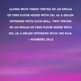 along with three-tenths of an ephah of fine flour mixed with oil as a grain offering with each bull, two-tenths of an ephah of fine flour mixed with oil as a grain offering with the ram,