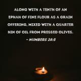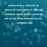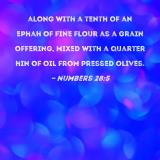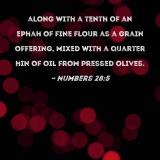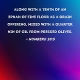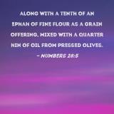 along with a tenth of an ephah of fine flour as a grain offering, mixed with a quarter hin of oil from pressed olives.
