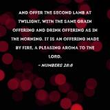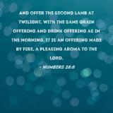 And offer the second lamb at twilight, with the same grain offering and drink offering as in the morning. It is an offering made by fire, a pleasing aroma to the LORD.