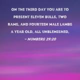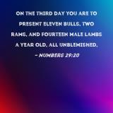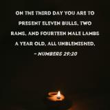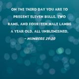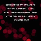 On the third day you are to present eleven bulls, two rams, and fourteen male lambs a year old, all unblemished,