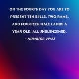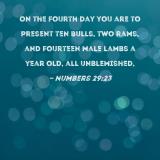 On the fourth day you are to present ten bulls, two rams, and fourteen male lambs a year old, all unblemished,