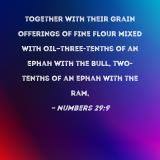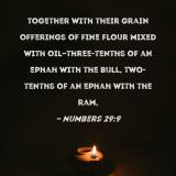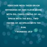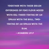 together with their grain offerings of fine flour mixed with oil--three-tenths of an ephah with the bull, two-tenths of an ephah with the ram,