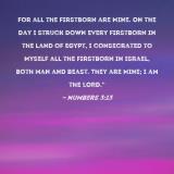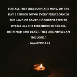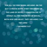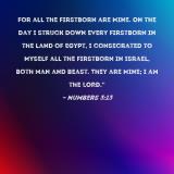 for all the firstborn are Mine. On the day I struck down every firstborn in the land of Egypt, I consecrated to Myself all the firstborn in Israel, both man and beast. They are Mine; I am the LORD."
