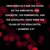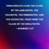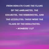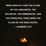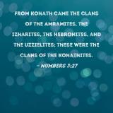 From Kohath came the clans of the Amramites, the Izharites, the Hebronites, and the Uzzielites; these were the clans of the Kohathites.