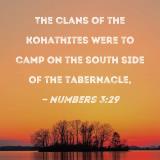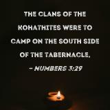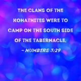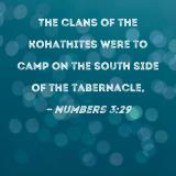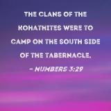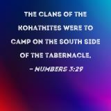 The clans of the Kohathites were to camp on the south side of the tabernacle,