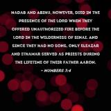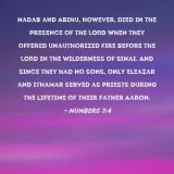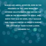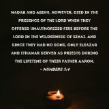 Pictures and Artwork Nadab and Abihu, however, died in the presence of the LORD when they offered unauthorized fire before the LORD in the Wilderness of Sinai. And since they had no sons, only Eleazar and Ithamar served as priests during the lifetime of their father Aaron. |