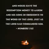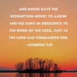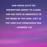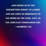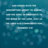 And Moses gave the redemption money to Aaron and his sons in obedience to the word of the LORD, just as the LORD had commanded him.