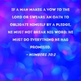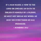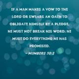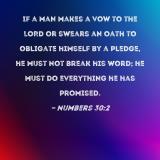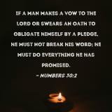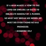 If a man makes a vow to the LORD or swears an oath to obligate himself by a pledge, he must not break his word; he must do everything he has promised.