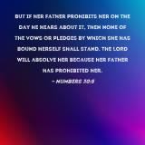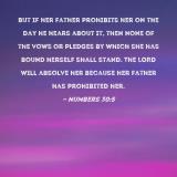 But if her father prohibits her on the day he hears about it, then none of the vows or pledges by which she has bound herself shall stand. The LORD will absolve her because her father has prohibited her.