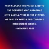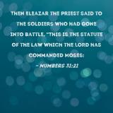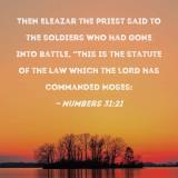 Then Eleazar the priest said to the soldiers who had gone into battle, "This is the statute of the law which the LORD has commanded Moses: