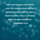 "You and Eleazar the priest and the family heads of the congregation are to take a count of what was captured, both of man and beast.