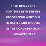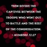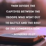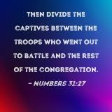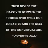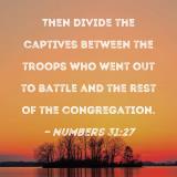 Then divide the captives between the troops who went out to battle and the rest of the congregation.