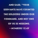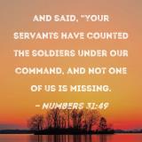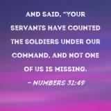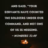 and said, "Your servants have counted the soldiers under our command, and not one of us is missing.