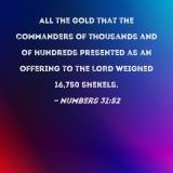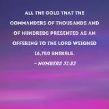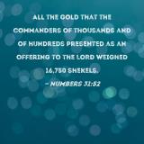 All the gold that the commanders of thousands and of hundreds presented as an offering to the LORD weighed 16,750 shekels.