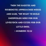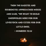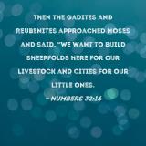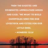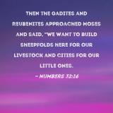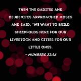 Then the Gadites and Reubenites approached Moses and said, "We want to build sheepfolds here for our livestock and cities for our little ones.