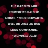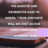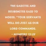 The Gadites and Reubenites said to Moses, "Your servants will do just as our lord commands.