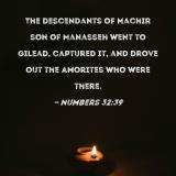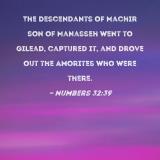 The descendants of Machir son of Manasseh went to Gilead, captured it, and drove out the Amorites who were there.