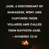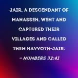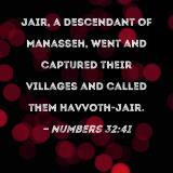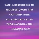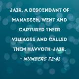 Jair, a descendant of Manasseh, went and captured their villages and called them Havvoth-jair.