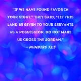 "If we have found favor in your sight," they said, "let this land be given to your servants as a possession. Do not make us cross the Jordan."