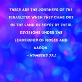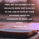 These are the journeys of the Israelites when they came out of the land of Egypt by their divisions under the leadership of Moses and Aaron.