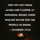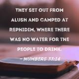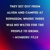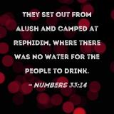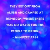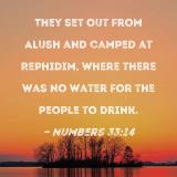They set out from Alush and camped at Rephidim, where there was no water for the people to drink.