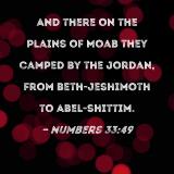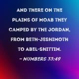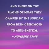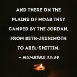 And there on the plains of Moab they camped by the Jordan, from Beth-jeshimoth to Abel-shittim.