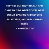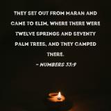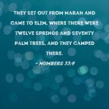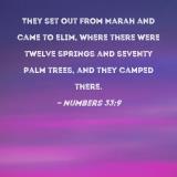 They set out from Marah and came to Elim, where there were twelve springs and seventy palm trees, and they camped there.