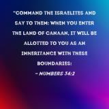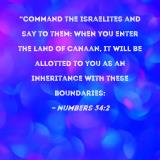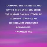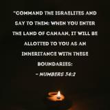 "Command the Israelites and say to them: When you enter the land of Canaan, it will be allotted to you as an inheritance with these boundaries: