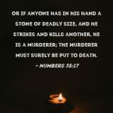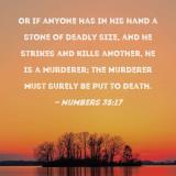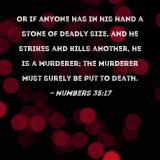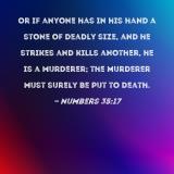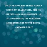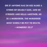 Or if anyone has in his hand a stone of deadly size, and he strikes and kills another, he is a murderer; the murderer must surely be put to death.
