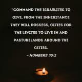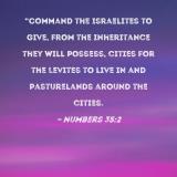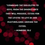 "Command the Israelites to give, from the inheritance they will possess, cities for the Levites to live in and pasturelands around the cities.
