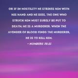 or if in hostility he strikes him with his hand and he dies, the one who struck him must surely be put to death; he is a murderer. When the avenger of blood finds the murderer, he is to kill him.