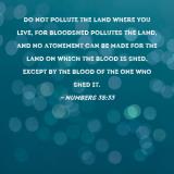 Do not pollute the land where you live, for bloodshed pollutes the land, and no atonement can be made for the land on which the blood is shed, except by the blood of the one who shed it.