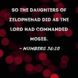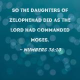 So the daughters of Zelophehad did as the LORD had commanded Moses.