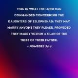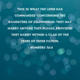 This is what the LORD has commanded concerning the daughters of Zelophehad: They may marry anyone they please, provided they marry within a clan of the tribe of their father.
