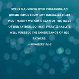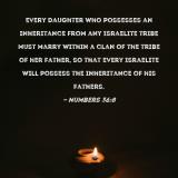 Every daughter who possesses an inheritance from any Israelite tribe must marry within a clan of the tribe of her father, so that every Israelite will possess the inheritance of his fathers.