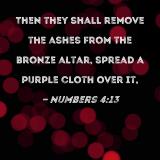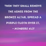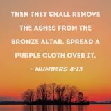 Then they shall remove the ashes from the bronze altar, spread a purple cloth over it,