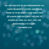 All the service of the Gershonites--all their transport duties and other work--is to be done at the direction of Aaron and his sons; you are to assign to them all that they are responsible to carry.