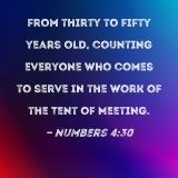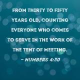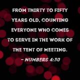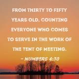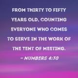 from thirty to fifty years old, counting everyone who comes to serve in the work of the Tent of Meeting.