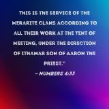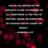 This is the service of the Merarite clans according to all their work at the Tent of Meeting, under the direction of Ithamar son of Aaron the priest."