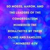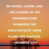 So Moses, Aaron, and the leaders of the congregation numbered the Kohathites by their clans and families,