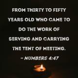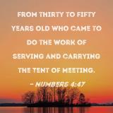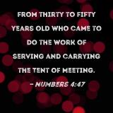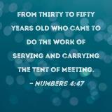 from thirty to fifty years old who came to do the work of serving and carrying the Tent of Meeting.