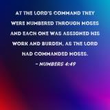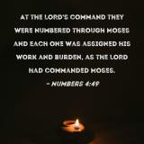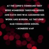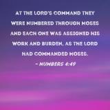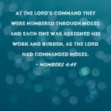 At the LORD's command they were numbered through Moses and each one was assigned his work and burden, as the LORD had commanded Moses.