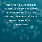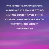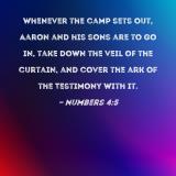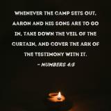 Whenever the camp sets out, Aaron and his sons are to go in, take down the veil of the curtain, and cover the ark of the Testimony with it.