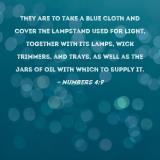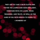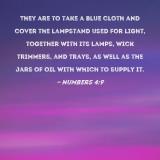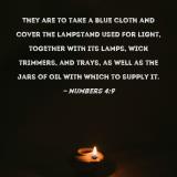 They are to take a blue cloth and cover the lampstand used for light, together with its lamps, wick trimmers, and trays, as well as the jars of oil with which to supply it.