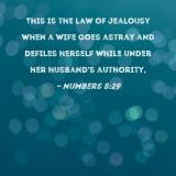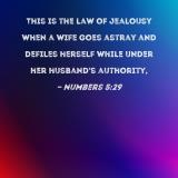 This is the law of jealousy when a wife goes astray and defiles herself while under her husband's authority,