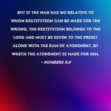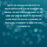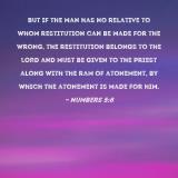 But if the man has no relative to whom restitution can be made for the wrong, the restitution belongs to the LORD and must be given to the priest along with the ram of atonement, by which the atonement is made for him.