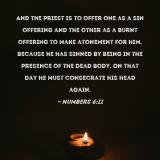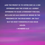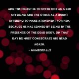 And the priest is to offer one as a sin offering and the other as a burnt offering to make atonement for him, because he has sinned by being in the presence of the dead body. On that day he must consecrate his head again.